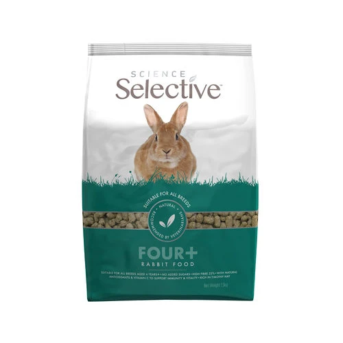 Dank dem geringen Anteil an Zucker und Proteinen wird Übergewicht bei den zunehmend weniger aktiven Kaninchen vorgebeugt. Supreme Science Selective Mature Rabbit enthält zudem Wiesen-Lieschgras und Thymian, welche den Appetit stimulieren. Dies ist vor allem wichtig für ältere Kaninchen, die mit zunehmendem Alter häufig weniger Appetit haben. Das Kaninchenfutter setzt sich auch aus zahlreichen Inhaltsstoffen zusammen, die reich an Antioxidantien sind und somit das Immunsystem unterstützen, wie Heidelbeere, Ginko-Extrakt und Extrakte von grünem Tee.
