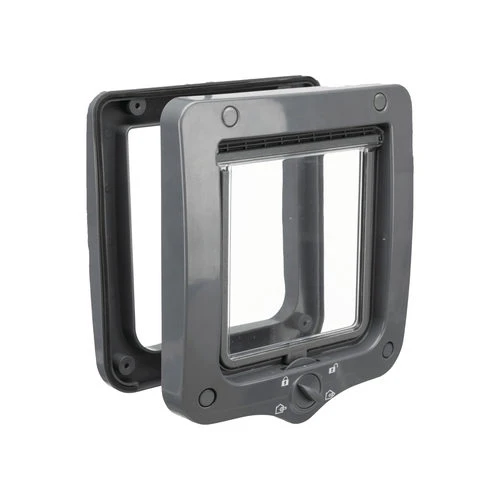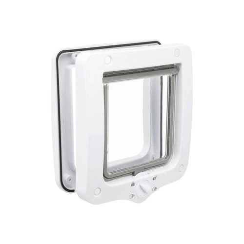 Die 4-Wege-Freilauftür von Trixie ist eine Katzenklappe mit einer 4-Positionen-Sicherheitsverriegelung. Die Katzenklappe ist auch für kleine Hunde geeignet.