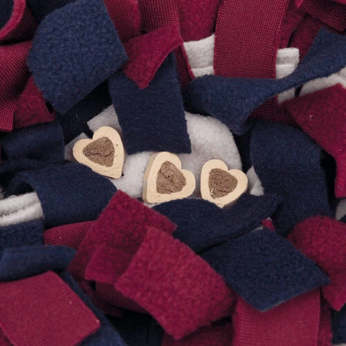 Der Schnüffelteppich von Trixie ist ein strategisches Spielzeug für Hunde und Katzen jeden Alters. Sowohl Hunde als auch Katzen, müssen sich nicht nur körperlich auspowern, sondern benötigen auch mentale Herausforderungen. Dieser Schnüffelteppich besteht aus Fleecestreifen unterschiedlicher Länge, zwischen denen Sie eine feine Leckerei oder ein paar Snacks verstecken können. Ziel des Spiels ist es, dass der Hund oder die Katze die Belohnung mithilfe von Schnauze oder Pfoten aufspürt. Eine herausnehmbare Kunststoffplatte sorgt dafür, dass der Schnüffelteppich während des Spiels nicht zusammenknüllt. Die Schnüffelmatte von Trixie wird inklusive Anleitung sowie Tipps und Tricks für das Spiel geliefert. Hinweis: Lassen Sie Ihr Tier niemals unbeaufsichtigt mit der Schnüffelmatte spielen. Greifen Sie ein, sobald Ihr Hund oder Ihre Katze in den Schnüffelteppich hineinbeißt, daran zerrt oder anderweitig zerstört.