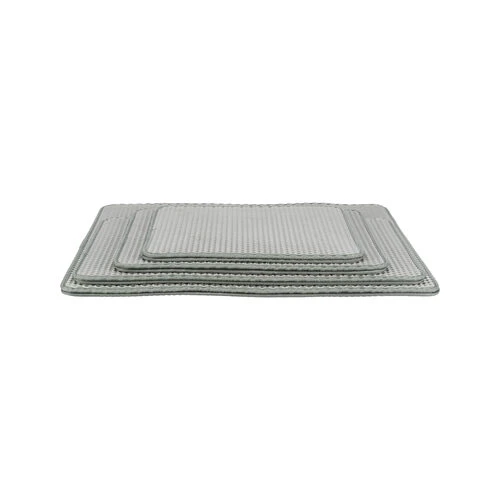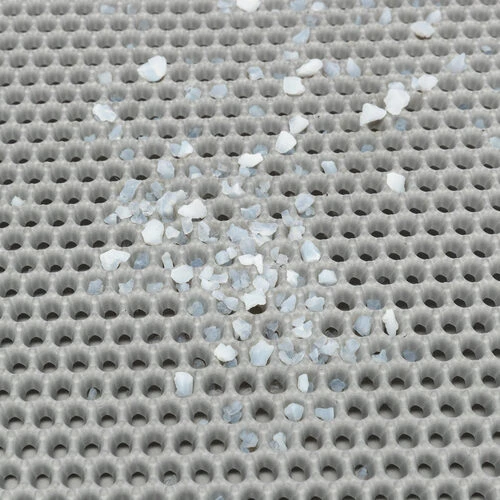 Dank der siebartigen Oberfläche fängt die Matte leicht die Katzenstreu auf! Die Matte ist aus weichem Material gefertigt, was ein einfaches Biegen ermöglicht, um die gesammelte Katzenstreu zu entfernen. Die Reinigung der Matte ist dank des offenen Designs ebenfalls einfach. Die zwei Lagen können mit einem Klettverschluss miteinander verbunden werden.